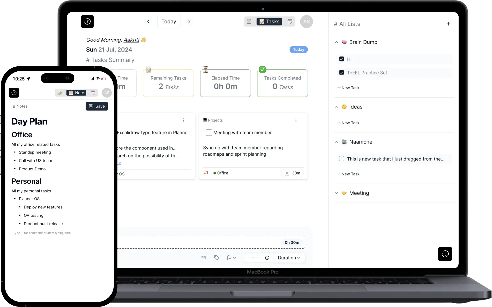Plan OS helps you manage tasks, track progress, sync calendars, capture ideas, and journal daily. Support us to keep enhancing your productivity! π